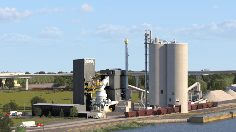 Ozinga has officially broken ground on a cutting-edge low-carbon cement manufacturing facility in East Chicago, Indiana. Equipped with one of North America’s largest vertical roller mills, the new plant will produce one million tons of low-carbon cementitious materials annually. Strategically located with direct access to rail, truck, and water (via