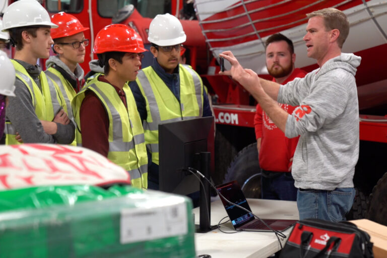 Students from Carl Sandburg High School in Orland Park, Illinois stopped by the Merry Mixer for a field trip. The students were a part of the Electronics program and wanted to know how the truck operates. Members of Ozinga's Communications Department discussed how they utilize electronics in the building of