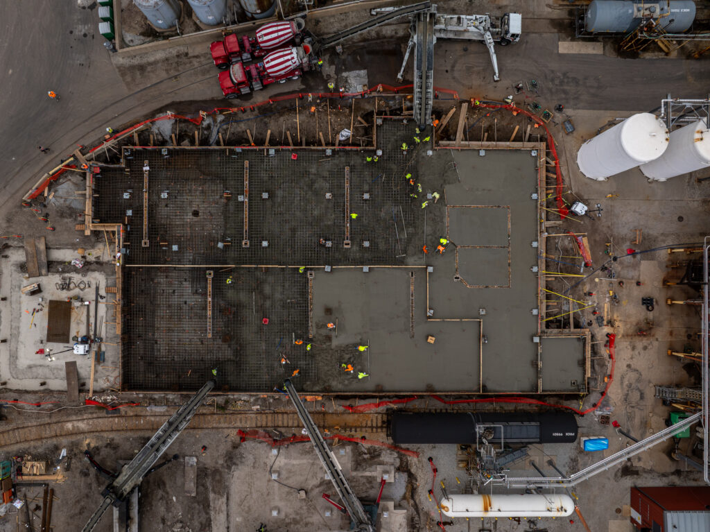 Lindblad Construction, in partnership with Walsh Construction, needed to complete a nearly 2,000 cubic yard continuous mat foundation pour at an operational industrial plant in South Chicago within a single day. The project demanded strict adherence to safety protocols, precise timing, and coordination across multiple concrete plants. Ozinga provided comprehensive planning, coordination, and execution support to deliver 185 loads of concrete with zero rejected loads and no safety incidents.